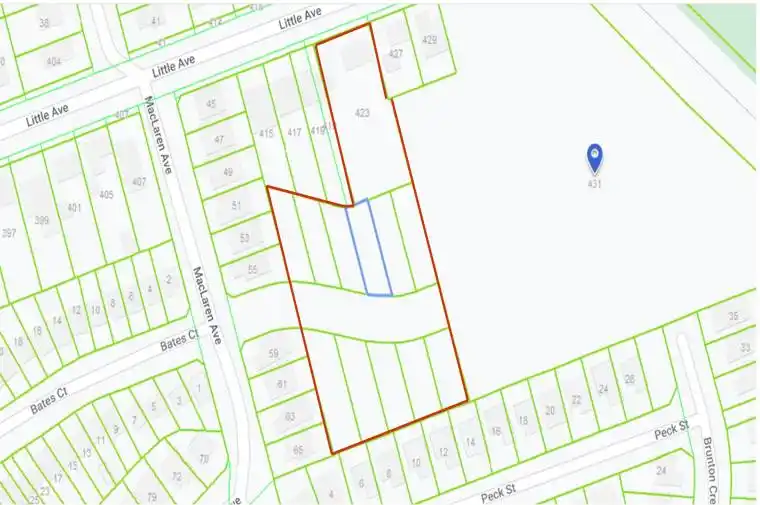 Vacant land with Development Opportunity. Prime location. Potential of 55-60 townhomes. Property currently is Registered plan of subdivision zoned for 11 single family homes, may be converted up to 1150 linear feet of (55-60) townhouses. VTB available