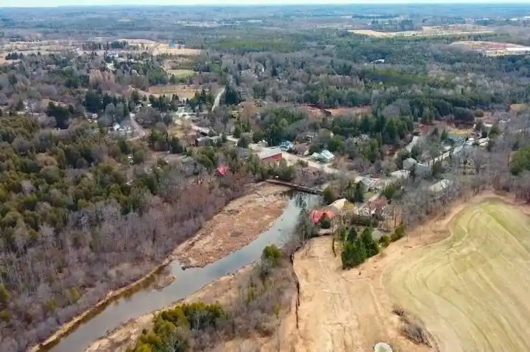 From the high point of this 160 scenic acres, about 100 of which is productively rolling farmland, you’ll take in panoramic views of peaceful horizons miles beyond. What a building site! In fact, a new maple-lined driveway to the loftiest vantage point is already waiting for you. Or, you may prefer to renew the vintage 1880’s stone farmhouse surrounded by century old maples which awaits your gentle restoration. And nearby, the ruins of an equally historical stone barn present a conundrum: enjoy the beauty as it is, or perhaps repurpose it creatively to entertain guests with candlelight dinners under the stars. Wandering down the grassy slopes into mature cedars, you come upon your own full kilometre of peaceful Eramosa River frontage which forms a natural boundary with the village of Eden Mills on the other bank. Yes, this property offers a rare mix of good agricultural land alongside scenic river frontage and woodland almost in town and once in a lifetime homesite or old stoney to restore, all with the flexibility that comes from having three road frontages. All just 45 minutes to Pearson International Airport. This may be one of the soundest long-term investments you will ever make, while enjoying land that works as hard as it inspires. Realtors say all the time that “Opportunities like this don’t come along very often.” Believe it this time.