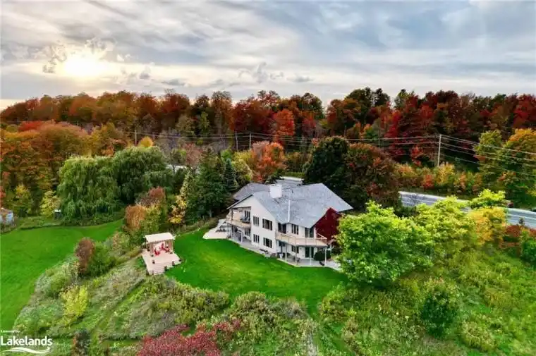 Welcome to your private four-season retreat, a breathtaking 9.35-acre executive estate originally designed as a charming bed and breakfast. Whether you seek a spacious single-family home, or the opportunity to operate a home-based business, this property offers many possibilities. With over 4,100 sq. ft. of living space, this stunning residence features 5 bedrooms and 5 bathrooms, including 4 ensuites for ultimate comfort and privacy. The walkout basement with a separate entrance enhances the flexibility of the home. Inside, soaring cathedral ceilings, three cozy fireplaces, and a country kitchen with a wet pantry create a warm and inviting atmosphere. High-speed fiber-optic internet ensures seamless connectivity for business or leisure. State-of-the-art dual geothermal systems provide exceptional energy efficiency year-round. Step outside to experience 2,500 sq. ft. of decking and patio space, ideal for entertaining or relaxing while soaking in the breathtaking views of Devils Glen Ski Hills and the adjacent provincial park. A picturesque 0.75-acre pond, complete with a pond-fed sprinkler system, enhances the natural beauty of the landscape. Nature lovers will appreciate direct access to the Bruce Trail, while skiing, golfing, and outdoor adventures await just minutes away. Conveniently located only 90 minutes from Toronto, 40 minutes from Barrie, and 20 minutes from Blue Mountain Village, this is the perfect escape from city life. Come and live your best life in this extraordinary estate!