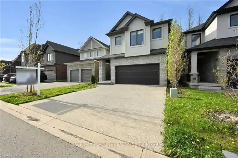 Welcome to your future home tastefuly upgraded, Stone & Stucco, Featuring 4 bed and 4 En-Suites on 2nd Level.6 bath altogether ,Approx 3000 sqft of living space.Ravine lot with walk-out Basement, income potential from the basement.Close to Falls, golf club, raised deck and fully upgraded kitchen with alarm system. Common Element fee of $65 for snow and garbage removal.**EXTRAS** Exposed concrete driveway & Fully Landscaped.No neighbours in the back,lots of open space,Tons of Upgrades,custom front door,custom lights throughout the house.Pot light outside the house, lots of sunlight and big windows.