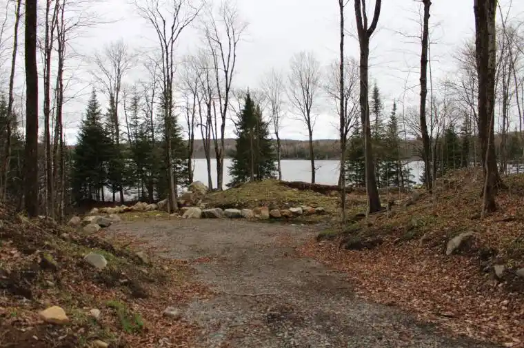 Beautiful Private Waterfront Lot with 650ft. Lakefront and 18 Acres — Driveway installed to building site — Foundation Area prepared and excavated in preparation for footings — Building Site to Lake has been cleaned to allow a beautiful view over the lake — Southern Exposure — Good Bass Fishing — 1000’s Acres of Crown Land close by for ATV and Hiking – Snowmobile Trails near by.