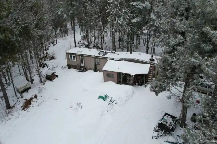 Located with a view of Round Lake and Golden Lake through the treetops on a municipally maintained gravel road. Close proximity to Killaloe, and Barry’s Bay. Just over 2 acres with no rear neighbors backing onto large acreage of private land, and a spring in the back yard that flows year round. The park model home is need of repair or removal, but offers a good start to anyone willing, the well produces potable water, the septic system is in operating condition and there is a circular driveway with plenty of parking.