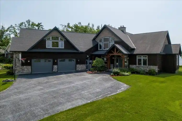If you are looking for an extra-ordinary home that has everything from Montana style to Viceroy style build, from privacy to community amenities and Bungalow with second storey entertainment loft…This is the home for you. Beautiful viceroy style home built with 25 Ft high ceilings and huge glass windows-wall overlooking lake Simcoe. Custom built waterfront home with no expense spared and serviced by the town water and sewer, gives you the lifestyle that is best of both worlds. 1.5 hrs from GTA. 4 bedrooms, 3 bathrooms, 2 fireplaces, extra big garage that can fit 2 big trucks, & your toys & work bench. All bedrooms are 12 Ft high. On a private cul-de-sac, backing onto the marina & walk to the community beach in your backyard. The stone wall in the center of the house makes a huge statement that makes this home hard to ignore. Membership to Bayshore Village community offers golf course, outdoor swimming pool, club house, tennis courts, 3 marinas, boat/RV storage space. All bedrooms are on the main floor. Family Room / office on the upper loft w/fire place, open to below & overlooking the lake. Fun Rec room above the garage presently occupies Pool table, wet Bar, gym & music room. This house has everything for everyone.