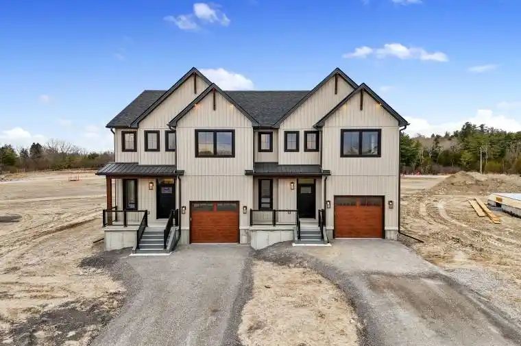 OPEN HOUSE – Check in at Eastfields Model Home 60 Hollingsworth St., Colborne. The Flynn at 3 Hollingsworth is a spacious semi-detached home offering 3 bedrooms and 2.5 bathrooms, with 2,027 sq ft of living space. Nestled in the serene and welcoming community of Colborne. Designed with modern families in mind, this home blends functionality and style with a practical layout and high-end features. Enter through the spacious front foyer, greeted by a staircase leading up to the second level. A closet for storage and a powder room are conveniently located off the foyer. The mudroom provides easy access to the 1-car garage and leads into the open-concept kitchen, dining, and great room. The kitchen flows seamlessly into the dining area and great room, creating a perfect space for family gatherings and entertaining. A sliding door from the dining room leads out to a deck, featuring a privacy screen to ensure homeowners enjoy their outdoor space without feeling overlooked by their neighbours. On the upper level, the primary bedroom features a large walk-in closet and a luxurious ensuite bathroom. Additionally, there is a large laundry room, providing added convenience and storage. The two generously sized bedrooms share a primary bathroom, and a rough-in elevator or optional closet is available on this level. The Flynn stands out for its privacy screen on the deck, offering separation from neighbours and enhancing outdoor enjoyment. The versatile storage options, including the closets created from the rough-in elevator on both levels, provide added convenience without sacrificing style. This home offers a perfect blend of modern design, spacious living, and practical features, ideal for growing families or those who want extra space to live comfortably. COMPLETED – MOVE IN READY!