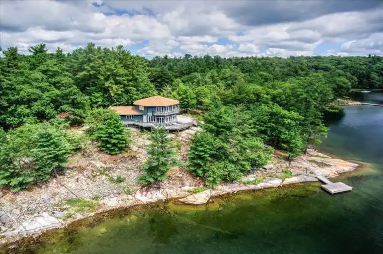 Rare Georgian Bay Offering Over 29 Private Acres with Expansion Potential on Georgian Bay. Introducing a truly exceptional land banking and lifestyle opportunity on iconic iconic Georgian Bay where privacy, scale, and scenic beauty come together in perfect harmony. Set on over 29 acres with an impressive 1,400+ feet of natural granite shoreline, this striking property is just minutes from Killbear Provincial Park, nearby marinas, and boat launches. For those seeking even more, three adjoining parcels are also available, offering a rare chance to expand your holdings to over 81 acres on prime Georgian Bay frontage. Expertly crafted by Distler Construction, the winterized furnished cottage offers over 2,000 sq. ft. of thoughtfully designed living space. Featuring three bedrooms across two levels, the layout includes a private principal suite complete with a walk-in closet and luxurious ensuite. Elevated on a scenic peninsula, the cottage’s unique design takes full advantage of breathtaking southern views across Loon Bay. A spacious sundeck invites you to relax in the all-day sun, while the attached garage provides ample storage for all your recreational toys and equipment. This water-access property is a dream for boating and water enthusiasts, with sheltered deep-water docking and dual frontage on both Loon Bay and Deep Bay. Whether you’re seeking a private family retreat, a recreational investment, or a rare Georgian Bay land-banking opportunity, this property offers endless possibilities. The legacy begins hereon the pristine shores of Georgian Bay.