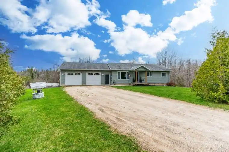 Looking for a home that offers space, flexibility, and the kind of setting that makes everyday life feel like a getaway? This 2+1 bedroom, 3 full bath bungalow sits on just under 2 acres, surrounded by mature trees, a peaceful pond, and a natural wetland that welcomes ducks every spring. Just 15 minutes from Collingwood, this property offers the perfect blend of comfort and country charm. Inside, the open-concept main floor is bright and functional. The kitchen, dining, and living areas flow together seamlessly, ideal for both everyday living and entertaining. The primary bedroom is steps from a full bath with a soaker tub. If main floor laundry is important to you, it’s included in this space, while the second bedroom has a dedicated bathroom across the hall, creating a thoughtful and flexible layout. The finished walkout basement adds even more versatility. Set up as a self-contained apartment with its own kitchenette, full bath, and 2nd laundry, it’s ready for extended family, guests, or a private entertaining space, whatever fits your life best. Step outside, and the lifestyle begins. The oversized 24’x30′ garage gives you room for vehicles, tools, or hobbies. A chicken coop offers a chance to enjoy farm-fresh eggs, while an included sea can provides secure extra storage for seasonal gear or equipment. The backyard is private enough that you’ll feel completely at ease enjoying the seller’s favorite feature, the outdoor shower. Once you’ve tried it, you’ll wonder why you didn’t have one all along. The back deck, shaded by a gazebo, is the perfect spot to sit and take it all in. Whether it’s morning coffee, an evening drink, or just a quiet moment at the end of the day, the peace and privacy here are what make this place feel like home.
