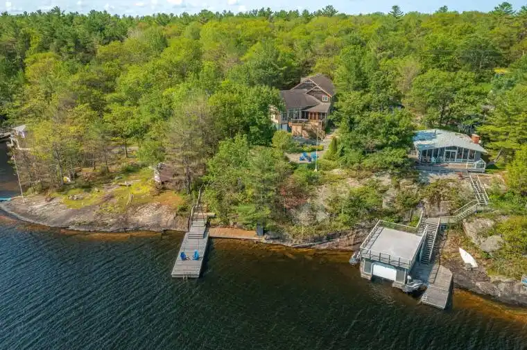 A rare opportunity to own a truly exceptional retreat+investment on the coveted south shore of Lake Muskoka. Welcome to Muskoka Blue, an extraordinary offering that combines modern sophistication with the timeless beauty of Muskoka’s natural landscape. A strong history as a very successful rental property with proven revenue allows the next owner to seamlessly start making a return on their investment from day one. Ideally situated less than two hours from the GTA, this stunning cottage delivers both accessibility and a world away feeling for an unrivaled sanctuary for those seeking the finest in waterfront living. Showcasing over 2,700 square feet of thoughtfully designed living space, Muskoka Blue features 5 bedrooms and 3 bathrooms, perfectly appointed for relaxed, elegant entertaining. Soaring 21-foot vaulted ceilings and expansive walls of glass frame breathtaking, long lake vistas, creating seamless indoor-outdoor connections. The great room, anchored by a grand stone fireplace, is both impressive and inviting, while the screened Muskoka room and extensive decking further extend the living spaces into the natural surroundings.The chefs kitchen is the heart of the home, offering a large centre island, Quartz countertops, and premium stainless steel appliances the ideal setting for gathering with family and guests. Outdoors, a private cantilevered dock invites endless exploration across Muskoka’s famed Big Three Lakes Muskoka, Rosseau, and Joseph with exceptional opportunities for boating, swimming, and water sports. Designed for memorable entertaining, the generous outdoor granite fire pit area, al fresco dining spaces, and thoughtful landscaping ensure privacy and tranquility. Offered fully furnished, Muskoka Blue is a true turnkey property, offering immediate enjoyment of all Muskoka has to offer. Rental income history available upon request.