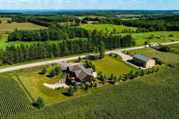 Sitting On A Perfectly Manicured 1.24 Acres Surrounded By Crop Fields Is This Stunning Custom Built Bungalow With Views From Every Window And The Most Incredible 1746 sq. ft Shop W/ Separate Driveway. Located Just 5 Minutes To Shelburne And Less Than An Hour To Pearson. The Bungalow Features An Open Concept Design With Hardwood Floors Throughout The Main Level, Vaulted Ceilings, Amazing Chefs Kitchen With Granite Countertops And Centre Island, Living Room With Walk Out To A Deck, 3 Great Sized Bedrooms, Main Floor Laundry With Access To 3 Car Garage. The Lower Level Is Fully Finished With A Walk Out To A Fully Fenced Side yard. The Lower Level Is Complete W/ A Third Washroom, Large Office With Double Doors And A Large Rec Room Complete With Wet Bar. SHOP: 2018/2019 – 36′ X 52′ (1746 Sqft)| Ceiling 15.5′ | 10′ x 10, & 14′ by 14′ Doors | ICF 22″ Insulation | In Floor Heating | Steel Roof | 100AMP Service | 2pc Bathroom| Holding Tank | 4 Camera Security System | Dog Bath |