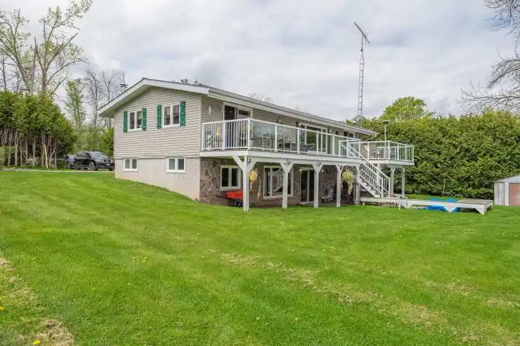 Lake Views! This is the 4-season waterfront escape you’ve been waiting for; pack up the family & the fishing rods and check it out along with the Fall colours! Located on the north shore of Rice Lake, along the scenic Trent Severn Waterway, this open-concept raised bungalow offers stunning lake views right from your couch, kitchen sink, deck or lower level. Enjoy top-notch fishing just steps from your door, and relax on the composite deck with plexiglass panels for unobstructed views. The main floor features a bright, open kitchen with centre island – perfect for family meals – living/dining area and a spacious primary bedroom with walkout. The lower level includes two additional bedrooms, a cozy Rec room with wood stove, and a walkout to the backyard, making it ideal for guests and family gatherings. A 4pc bath upstairs and 2pc bath downstairs add to the convenience. Outdoors, you’ll find a flat yard with 130+feet of water frontage, the dock and boat lift ready for your lake adventures, and you’re just minutes from Elmhirt’s Resort, Keene and 3 golf courses. The oversized double car garage with workshop space, electric furnace and an additional 200-amp service is a standout feature for hobbyists and gear storage. Extras include forced air electric furnace with heat pump, vaulted cedar ceiling on upper level, steel roof on house, LeafFilter Gutter Protection, septic system, UV light system, tinted windows, 200amp service and a lower deck wired for a hot tub. Whether you’re looking for a year-round residence or a lakeside getaway, this extra wide property offers the perfect mix of comfort, charm, and location. Nearby highlights: Keene Rec Centre, Lang Pioneer Village, Trans Canada Trail. Peterborough 30 min. (Casino, Costco), GTA 1.5+hrs, Port Hope 45 min. Hastings 15 min. Set on a private road; $245/year for road maintenance and snow removal. On school bus route; located at Foley Rd./Lakeside Rd.