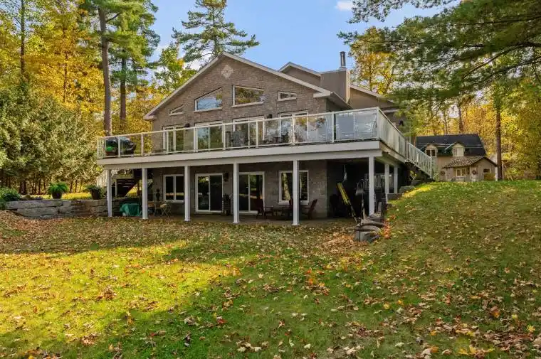 Everything you are looking for in a waterfront home…..privacy…..great waterfront…..peace and quiet! Perfect size for families and retirees alike. Retirees will love the loft apartment above the garage for overflow guests. Families will love the water sports in summer and winter activities…..fun all year round! This ideal waterfront on 3 Mile Bay offers good swimming (deep off the dock), great sunsets & not too much boat traffic. Sunfilled open concept main floor with cathedral ceilings & wall of windows. Warm kitchen incudes stainless steel appliances+ island. Great rm offers formal living rm + dining area & gas f/p. Primary bedroom offers patio doors to deck. A second bedroom & large main bath complete the main flr. Large rec rm with wood stove in full walk out basement + extra room for family & guests with a 3rd bedroom & 3 piece bath. Enjoy a private setting on a beautiful treed 1.2 acre lot with 180 ft of waterfront. While away the afternoons on the front verandah or deck. Oversized double garage with loft apartment + oversized single garage……lot’s of room to store your “toys”! With wildlife, snowmobile trails, skiing & golf nearby….this property offers a lifestyle second to none! Flexible possession….easy to show!