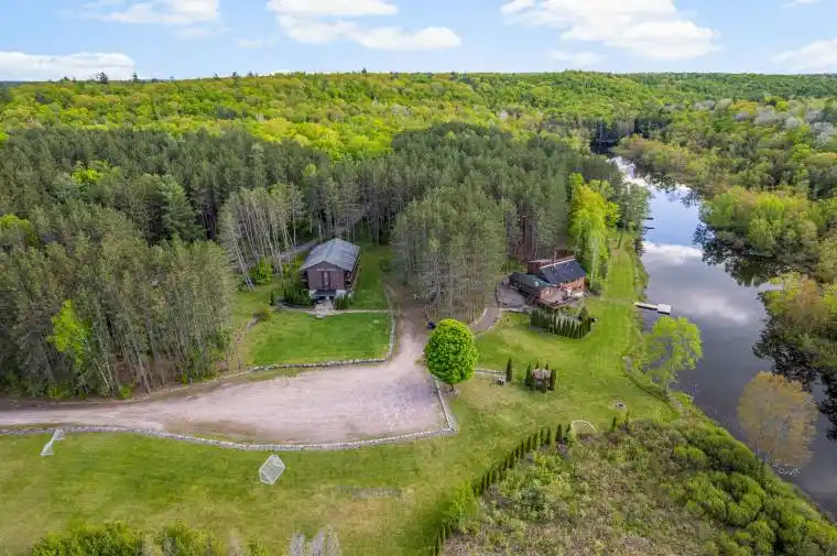 Welcome to 16 & 30 Beaver Creek Lane! Rare opportunity to own this unique, fully operational, turn key investment property. 3 buildings nestled on 11.4 pristine acres along beautiful Beavercreek with extensive river and road frontage. Surrounded by mature pine trees, rolling hills, hiking trails, winding rivers and is tucked away with convenient access to Highway 62. This exceptional property features stunning Scandinavian log construction, including the main lodge that sleeps 60 guests with bedrooms on the two upper floors. Each bedroom is fully equipped with a full washroom, closet and balcony. The Chalet can accommodate an additional 15 guests. The property also offers staff quarters and offices in the restaurant building, making it ideal for resort, retreat, or other hospitality uses. Impeccably maintained, the main lodge boasts a rustic ambiance with ready to use rooms for guests and a large meeting hall on the ground floor for your special events or functions. The waterfront restaurant features both an indoor and outdoor deck, has a fully equipped commercial kitchen that is fully functioning and ready for your business. Already approved for expansion, plans have been prepared for another large river-facing building. Just bring your building permits and vision. Let your imagination take the lead on this great opportunity with unlimited potential in a serene, natural setting, just 20 minutes from Bancroft and 25 minutes from Madoc. The extra large septic tank and 2 drilled wells service the main lodge, chalet and restaurant. Main lodge has upgraded 3 phase electrical system and electric baseboard heat in all rooms. There is also a large Quonset hut for additional space for events or meetings, a beautiful dock overlooking the water as well as recreational areas and sports courts. Don’t miss this opportunity, book your private viewing today!