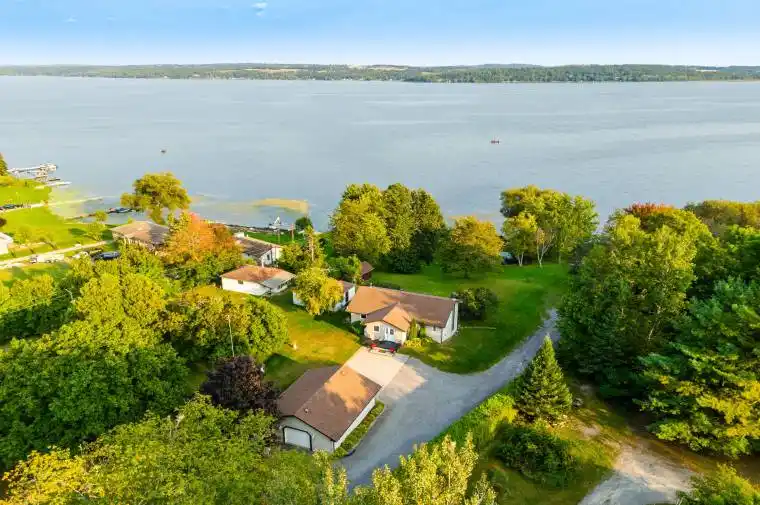 Introducing 7351 Byers Road on Beautiful Rice Lake. This unique property offers * waterfront resort commercial zoning * and comes with an abundance of offerings. 123 feet of direct waterfront on just under 2 acres of property. Built in 2002 the Bungalow is well maintained and Move in Ready. Featuring an Open concept floorplan with views of the Lake from every room. Spacious Primary Bedroom with 4 Piece Ensuite bath. Main floor laundry. The Basement is finished with 2 bedrooms, rec room, a walk out, a wood stove and rough in bath. The 30ft x 22ft Detached Garage/Workshop is ideal for the hobbyist or outdoor enthusiast. Invite your friends and family and host them in your Two, 3 Season Cabins each with their own kitchen, bathroom, bedroom and living area. Relax in Your very own wood fired Traditional Finnish Sauna overlooking the Lake. The property is impeccably maintained offering a large level area to enjoy and a gentle rolling slope down to the lake. A serene south facing waterfront with mature trees and pond. Properties like this are extremely rare and do not often become available for sale. Available upon request: floorplans, survey, well record, septic use permit, zoning info, home inspection report. Shingles on House (2016) Furnace (2023)