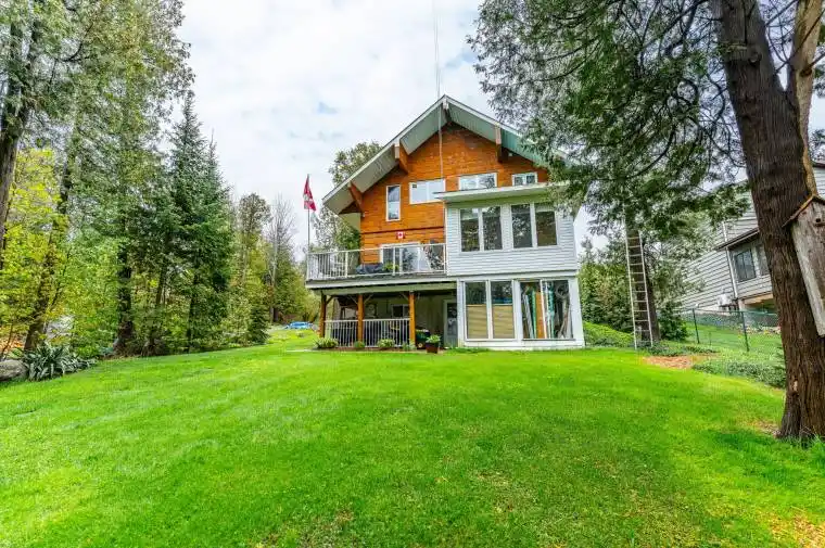 Georgian Bay Waterfront Log Home with In-Law Potential! Welcome to your private slice of paradise! This stunning 4-bed, 3-bath two-storey log home sits proudly on approx. 60 ft of pristine Georgian Bay shoreline perfect for boating, fishing, or just soaking in the views from the dock. Inside, charm meets functionality with open concept main floor with hardwood floors and tumbled tile. A gas fireplace makes this space cozy. Off the main living area a sunroom spills onto a large deck, ideal for morning coffees or sunset cocktails. A bright open kitchen and large 3 pc bath with laundry complete this level. Upstairs there is a walkway overlooking the main living area. This level features fabulous views of the bay, 2 bedrooms and a 4 pc bath. The walk-out basement features in-law suite potential with a second kitchen and 3 pc bath great for extended family or extra income. Economical heating and cooling provided by a heat pump on both the lower and main levels as well as two gas fireplaces. This home is conveniently serviced by municipal water and natural gas. Set on a private, treed lot, you’ll also find a 20×24 2-car garage with workshop and loft, two garden sheds, and a versatile boathouse for canoes and kayaks or extra storage. A large deck at the shoreline offers glorious Georgian Bay views. Pristine water awaits with removable docking and a boat lift. This ones not just a home it’s a lifestyle. Waterfront, woodsy charm, and room for the whole crew. Don’t wait Georgian Bay gems like this don’t come up often.