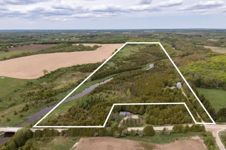 Situated on a tranquil 48-acre recreational paradise with river frontage on both sides of the Saugeen River, this property in Grey Highlands provides an ideal combination of privacy, nature, and family living. Whether you are looking for a peaceful permanent residence or a weekend getaway, this home and its surroundings promise four seasons of enjoyment.The main level welcomes you with a 3-season sunroom overlooking the trees, and a spacious upper deck extends your living space into the outdoors. An open-concept kitchen, dining, and living area, anchored by a cozy zero-clearance fireplace, is ideal for gatherings. The primary bedroom features built-in cabinetry, while a 4-piece bathroom and laundry room complete the main level. Downstairs, the walkout basement features a bright family room with a wood stove for added warmth, a bedroom with its own 3-piece ensuite bathroom, and a second 3-season sunroom. The home is efficiently heated and cooled with a propane-forced air furnace and central A/C. It also includes an air exchanger, drilled well, owned hot water tank, iron filter, and a newer well pump. A 25′ x 40′ detached shop featuring concrete floors and hydro is ideal for hobbyists or entrepreneurs. It offers the potential for a studio or workshop space above and includes a 60-amp pony panel. Additionally, you will find three garden sheds and a charming goldfish pond integrated into the landscape. The land is mostly treed with trails waiting to be reclaimed, offering a blank canvas for hiking and quiet riverfront exploration. From skiing, boating, fishing, golfing, scenic lookouts, waterfalls, and lakes, the area is a playground for outdoor enthusiasts. Located in an outdoor recreation hotspot, you’re just 10 minutes to Flesherton, under 20 minutes to Durham or Markdale, and 50 minutes to Owen Sound or Collingwood.Reconnect with nature and explore all that Grey County has to offer, this is a rare opportunity to own a riverside sanctuary with incredible potential.