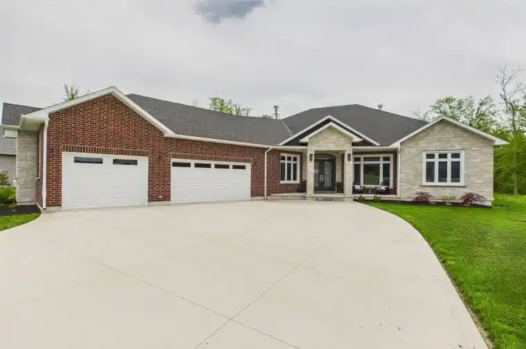 Experience the perfect blend of luxury, comfort and innovation in this stunning, executive bungalow just a short stroll from the Lake Huron beaches in Point Clark. This beautifully designed home has exceptional curb appeal and features a striking stone and brick front facade, a triple car garage providing ample space for vehicles, storage and complete with EV charger, plus a welcoming porch with extra high main door. Step inside the grand foyer and be greeted by 10′ ceilings, the expansive floor plan blending indoor and outdoor spaces, the abundance of large windows that flood the living areas with natural light, elegant LVP flooring adding a modern touch and ease of maintenance, and the convenient access to a well-appointed office, powder room and the laundry room. Be impressed by : the dining room with tray ceiling centered around the dual fireplace visible from the dining and great room; the great room offering a soaring cathedral ceiling, ceiling speakers, 80″ LG TV, and patio doors to your backyard paradise; the gourmet kitchen is a chef’s delight: extended ceiling height cabinetry, quartz countertops, a spacious island perfect for entertaining, CAFE appliances and a large walk-in pantry. The luxurious primary bedroom w spa-like ensuite is designed with floating double vanity, free-standing soaker tub, large custom shower and further complimented by the huge walk-in closet offering ample storage and organization options. The two additional bedrooms are generously sized, each with its own walk-in closet and ensuite bathrooms for added comfort. Step into your private oasis in the backyard with vinyl privacy fence, games and lounge areas plus stunning swim spa promising endless fun and relaxation; enhancing the atmosphere is the covered porch, with ceiling speakers, designed for lounging and entertaining. The added touch: smart home convenience allowing you to control lighting, temperature and security. Don’t miss the chance to make this exquisite home yours.