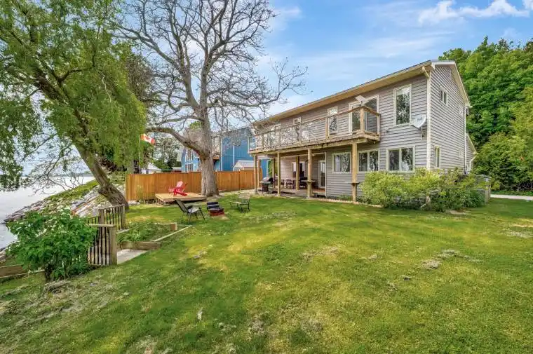 43 & 45 Clifford Street offers luxury waterfront living with dual residences. A rare and refined offering of one residential home with a cottage on one premier waterfront property along the crystal-clear shores of Lake Ontario, nestled in the peaceful and picturesque community of Carrying Place. This extraordinary estate blends panoramic lake views, modern elegance, and outstanding versatility, with direct sightlines to the iconic Presqu’ile Point. 43 Clifford Street offers 1,759 sq. ft. of beautifully updated living space, featuring 3 bedrooms and 2 bathrooms in a bright, open-concept layout. The main floor is designed for effortless entertaining, with a stylish kitchen and spacious living area offering stunning waterfront views. Step out onto the walkout patio for outdoor dining, relaxation, and year-round lakeside enjoyment.Upstairs, the three bedrooms enjoy breathtaking views, with two opening onto a private waterfront-facing deck a perfect spot for morning coffee. A full bathroom upstairs serves the bedrooms, with convenient access from the primary suite. Comfort is ensured with propane heating (Heat Pump), a charming wood stove, and a battery backup power system, keeping the home warm and secure year-round. 45 Clifford Street, with 1,008 sq. ft., is a separate 2-bedroom, 2-bathroom cottage offering equally captivating views of Lake Ontario. Whether for extended family, guests, or a luxury rental, the possibilities are endless.Swim, paddle board, and soak in the serenity along your own sandy, shallow-entry shoreline with natural rock ledge. This is waterfront living at its finest.