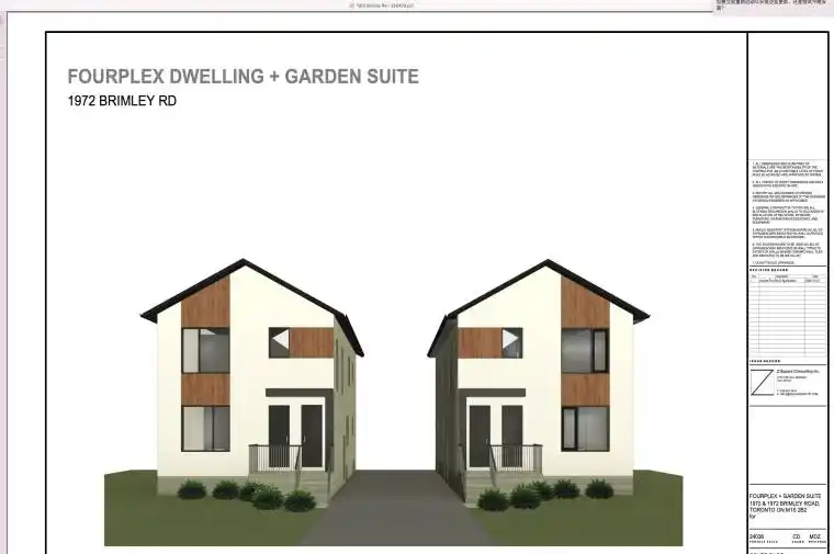 Attention Builders/Investors! Don’t Miss This Rare Opportunity To Build income rental property. will be Sale together with 1970 Brimley rd LOT .2 lot can be build 10-unit rental apartment total 38 rooms. Building permit application pending, expected to be approved in July . Comply with CMHC mortgage policy.Please see the attached surveys and reference plans. This 38′ x 159′ Severed Lot Is Conveniently Located To Nearby Amenities And Attractions. This Well Mainted Lot is Leveled and Features Access to Sewers, Municipal Water And Utility Lines. TTC At Door Step. Walking Distance To school Scarborough Town Centre. Easy Access to Hwy 401. Design drawing view attachment