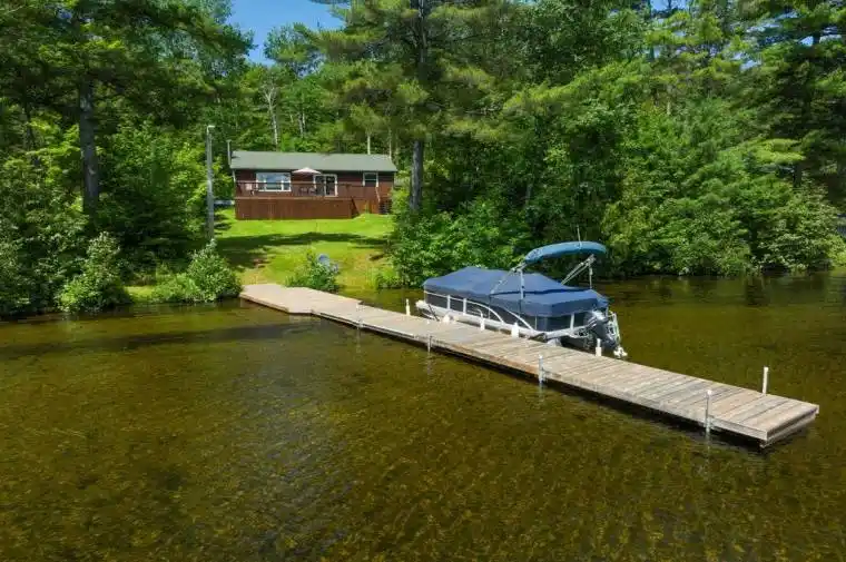 You will be surprised to learn this is a water access property. It is turnkey and has been exceptionally maintained. Just step in your boat included with this property and just a short ride away you will find yourself in this idyllic bay with a naturally sandy waterfront. Located on beautiful Mazinaw Lake you will find this private 3 bedroom bungalow that has all the amenities. A gentle slope leads upwards to an expansive deck that provides panoramic vistas of the lake while offering privacy. Easy entrance inside leads to a thoughtful floor plan that flows allowing plenty of room for family and friends. The deck wraps around and is a perfect setup for outdoor BBQs and family dining. Wall air conditioning in the summer will keep you nice and cool and the wood fireplace takes care of the ambiance and warmth on those chilly days. This fully serviced property has a complete septic system – a rare find for water access properties. Choose to putter on your own property or explore the trails with an ATV and attached excavator included. On the water enjoy the calm bays for fishing, paddling and relaxing or take to the open waters for waterskiing and wakeboarding. Dont forget this is the home of Bon Echo Park where you are a short ride to soaring cliffs and one of Ontario’s premiere Provincial parks. Embrace the experience of water access properties and the unique and rewarding experience they will provide for decades to come. Welcome to the Mazinaw and this turnkey property in the heart of the Land O Lakes region. Boat slip included for 2025 – ready to enjoy this summer!