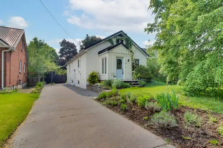 Charming Brick Home Steps from Barrie’s Waterfront! Located on a quiet cul-de-sac just a short walk to Barrie’s waterfront, parks, and vibrant downtown, this character-filled home offers a unique blend of vintage charm and modern upgrades. A bright and sunny foyer welcomes you into the thoughtfully designed main floor featuring an updated kitchen with maple cabinetry, island, and a distinctive tin backsplash. Rich wood flooring, exposed beams, and barn-style accents add warmth and style throughout the open-concept living and dining area. The main level includes two bedrooms and an updated 4-piece bath, with the primary suite featuring a sliding walkout to the fully fenced backyard perfect for enjoying peaceful mornings without leaving bed. There’s an unfinished attic that spans the length of the home, offering incredible potential for a third bedroom, loft, or private suite. The lower level includes a separate entrance, finished living area, large bedroom, 3-piece bath, and a rough-in ready space ideal for adding a kitchen to create an in-law suite or income-generating unit. Outside, enjoy a landscaped yard with stone patio and detached garage (used as workshop/storage could be converted back to garage) Ideal for first-time buyers, downsizers, or investors looking for a turn-key property near the lake and downtown amenities.