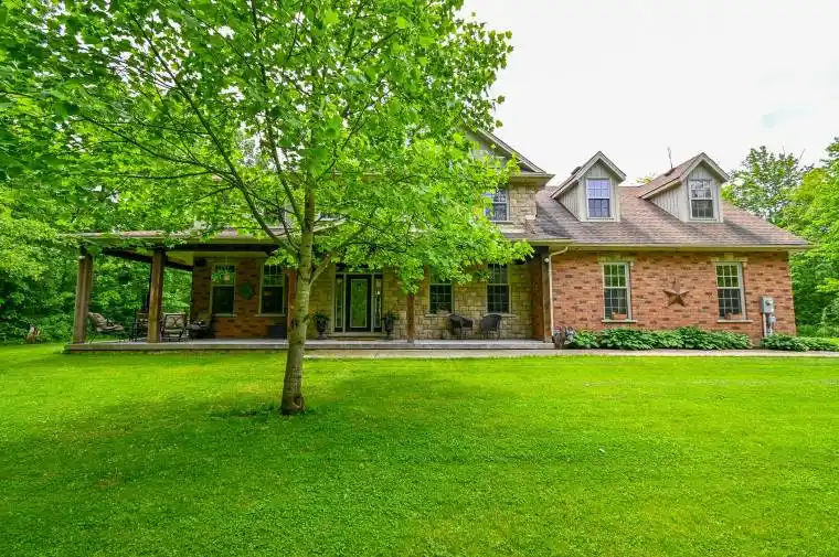 Welcome to “The Headwaters”! Nestled on 50 acres of pristine forest and 6 mile creek, this custom built, 2 storey estate offers the perfect blend of luxury, comfort and natural beauty. From the moment you pass through the gated entrance and travel along the tree lined driveway a sense of serenity will surround you. Whether you’re unwinding by the inground pool, basking in the warmth of the wood burning fireplace, every moment here feels like a peaceful escape. As you step inside you’re welcomed by soaring ceilings and an open concept design that bathes the home in natural light, creating an airy and inviting atmosphere. The upper level showcases 5 spacious bedrooms and 5 thoughtfully designed bathrooms, including 2 with Jack -and-Jill configurations. A convenient laundry chute adds a practical touch! The primary bedroom is an inviting retreat. Generously sized, this serene space offers a sitting area, a private balcony and the comfort of a gas fireplace. Complete with a 5 pc ensuite and an oversized dressing room style closet! The heart of the home is a grand family room with double doors opening to lush gardens, completed with a rumford wood fireplace.The remainder of the main level is thoughtfully designed offering a spacious dining area with classic French doors, a formal living room with a gas fireplace, a cozy breakfast nook overlooking the gardens and a quiet study with a private entrance. Here you will also find the laundry room, plenty of storage and 2 washrooms. Additional features include an attached double garage and a secondary entrance through the basement. For the hobbyists or those in need of extra space, the detached 2 storey triple garage is fully equipped with 2 wood stoves and is perfect for storing equipment, vehicles, or pursuing your passions! The property invites endless outdoor adventures, whether you enjoy gathering around campfires, exploring trails on your ATV, or snowmobiling through your very own backyard! This home is a timeless beauty.