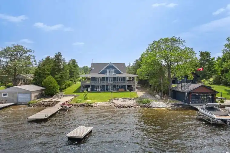 Rare waterfront on Sturgeon Lake within a 10 min drive of Fenelon Falls. Custom bungaloft home built in 2017. The features are endless in this home with 5 bedrooms, 5 bathrooms all with radiant in-floor heating, roughly 2,800 total Sq FT with a in-law suite, all on a half acre lot with 100 ft of clean, rocky bottom waterfront. Walk-out level basement with an in-law suite complete with two Jack & Jill style bedrooms connected to a 3-pc washroom, living room and separate kitchen. Open concept main level with wrap around deck overlooking the water. Bedroom with 3-pc ensuite bathroom with views of the water. Expanded kitchen with large island, pantry with reverse osmosis water, main floor laundry and 2-pc washroom by mudroom entrance. 20-foot-high ceilings up to the loft upstairs from the living room with wood burning fireplace. Upstairs, you have a loft, perfect for home office and day bed, two bedrooms, two washrooms. Upstairs guest bedroom has plenty of storage closets and a 3-pc guest washroom right outside the room. The primary bedroom, with its own 4-pc ensuite bathroom, has a bonus 9 ft by 11 ft private balcony to enjoy sunsets before going to bed or waking up with your morning coffee. Included is 20-foot dock, raft, marine rail and sea-doo lift. Enjoy the convenience of your private laneway to your own boat launch.