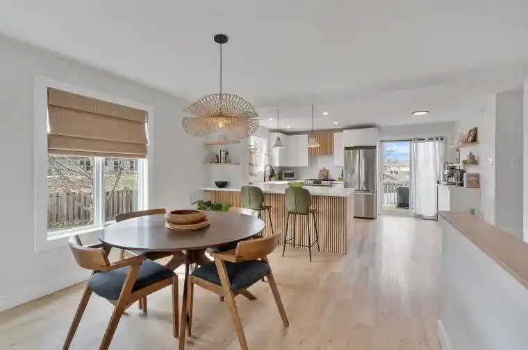 From this quiet cul-de-sac, you’d never guess what’s inside. A fully renovated modern haven with a sleek Scandinavian design, with 1,924 total finished sq.ft. A bright, beautiful white kitchen with natural wooden floating shelves and vertical wooden slats. A natural gas stove, quartz countertops, and a coffee bar. New LVP flooring throughout the upper level features an open-concept living space. Large windows give plenty of natural light into the living room with vaulted ceilings. Two bedrooms and a 4 PC bathroom upstairs. Continuing downstairs, you have 2 more bedrooms and a 3 pc bathroom with a large recreation room giving you ample opportunities to make your own. A utility room for extra storage and laundry. This raised bungalow with a single attached garage sits at the end of the court with a large, fully fenced pie-shaped lot. Two decks and western exposure for indoor-outdoor living. A greenhouse, raised garden beds, and an extra shed for gardening storage. Located only a short 10-15 minute walk to downtown Meaford restaurants/shops and the waterfront of Georgian Bay. The sump pump was new in April 2021, New furnace in 2018, Roof shingles were replaced in 2019, HWT 2025.