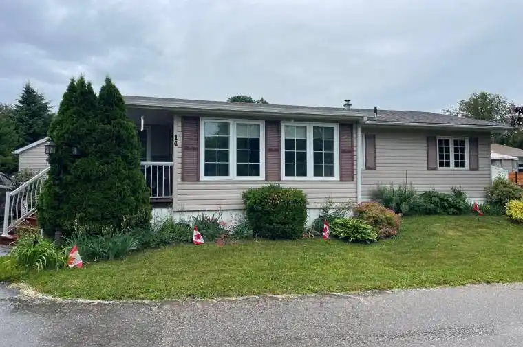 Desirable, carefree, low maintenance Royal Home is now available, consisting of 1122 sq. ft, of living space! This well-maintained 2-bedroom, 2-bathroom home features a fantastic floor plan, including the large kitchen with ample cabinetry with dining area and room for your sideboard. Footsteps off the kitchen and dining area you will find a separate laundry room for added convenience. The spacious primary suite with a 3-piece ensuite, walk-in closet, and room for a king-sized bed and your bedroom furnishings.. Enjoy your morning coffee in the bright 3-season sunroom at the front of the home. Outside, you”ll find a paved driveway, an oversized garage with electricity, beautiful perennial gardens, and views of a peaceful creek with mature trees. Located in a family friendly land lease community, offering a clubhouse and in-ground pool. Just minutes to the Town of Goderich, sandy beaches, golf courses, and unforgettable Lake Huron sunsets!