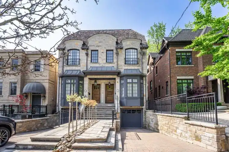 Impressive 3-Storey Custom Home with Striking Stone Facade. Built in 2007 and totally renovated by the current owner with the highest of quality and attention to detail. Exceptional eye for craftsmanship this home offers the next home owner the luxury and freedom to just move in, unpack and enjoy! Offering 2759 Sq. Ft. above grade with an additional 782 sq.ft. with walk-out to breathtaking south facing deep lot and low maintenance with Astroturf. The home boasts spacious principal rooms and luxurious finishes throughout. The main floor features soaring 10’1″ ceilings and recently sanded and stained hardwood floors. The bespoke Hinged kitchen and all bathrooms were fully redone in 2024, showcasing premium flooring, tiles, mirrors, and fixtures-including a Victoria & Albert porcelain tub and basins in the primary ensuite. The second floor offers 9′ ceilings, an oversized primary retreat with wall-to-wall built-ins with an additional walk-in closet, and a large balcony overlooking the rear garden. A second bedroom with ensuite, walk-in closet, and additional laundry complete this level. The third floor includes two more bedrooms-one generous sized bedroom with a large walk-in closet, the other with walkout to a private balcony. The walk-out lower level has 9′ ceilings, a large recreation room, bedroom, second laundry area, wine closet, storage, furnace room, and access to the garage. Additional highlights include an epoxy garage floor, new garage opener, and BBQ-ready outdoor gas line. Ideally located on a quiet, coveted street near Yonge & St. Clair in the Deer Park neighbourhood -steps to shops, dining, transit, Upper Canada College, Bishop Strachan, and Brown School. This is a not to be missed opportunity!