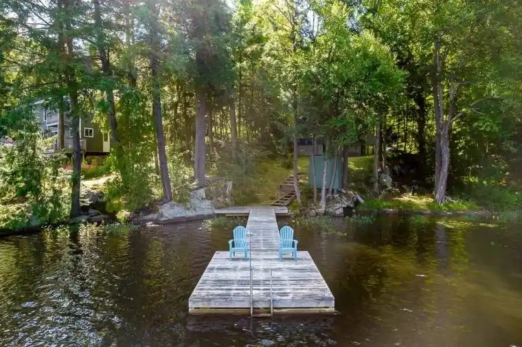 4 Seasons of PEACE and QUIET on Beautiful PROSPECT LAKE, BRACEBRIDGE, MUSKOKA!! Towering Pines, and beautiful granite stone accent this lovely 4-Season Cottage on Prospect Lake –just 20 minutes from Hwy 11, Town of Bracebridge, and 2 hours to the GTA! Zoned SR1 (Shoreline Residential) Vaulted ceilings, with fine wood finishes throughout. Layout is open, practical, with bedrooms at the back, common spaces at the waterfront end of the cottage. Prospect Lake has no horsepower or boating restrictions, allowing motor boats, paddling, swimming, fishing to your hearts content! In winter, enjoy snowshoeing, snowmobiling, cross country skiing and warmth by the fire! Fall colors are breathtaking here, with abundant wildlife, birds, deer all around! 4 Season use is easy, practical with the heated water-line, spray-foamed, heated crawlspace, efficient propane fireplace/stove, with supplemental heat in the bedrooms. There are many closets and storage areas, including a large, insulated, crawlspace area underneath. The primary bedroom has an ensuite for the owners privacy, plus the main bathroom for all. Sold with appliances, some furnishings to be determined.