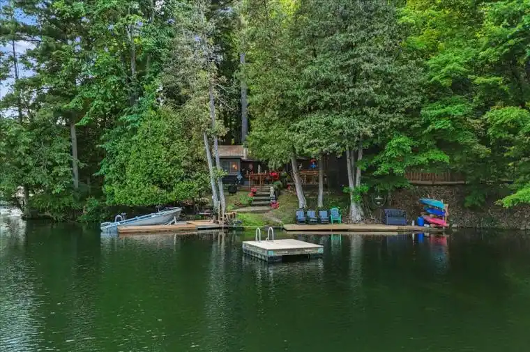 Dive into the ultimate getaway at this lively three-bedroom, two-bath waterfront cottage on the UNESCO Rideau Canal! Linked by a killer deck with a tiki bar for epic nights, it comes with a cozy guest cottage, a cute sleeping cabin, and a workshop for your projects. Ample docking and plenty of parking sit on clean, deep canal waters, with easy access to Indian, Clear, and Newboro Lakes – perfect for cannonballs or cruising, just one lock from Opinicon Lake. Stroll to historic Opinicon Resort, Chaffeys Locks, or the general store for snacks and fun. Your dream waterfront retreat awaits!