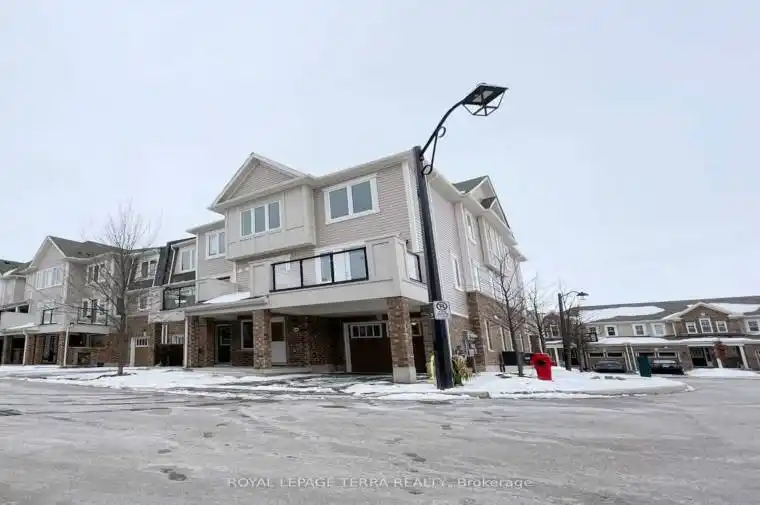 Welcome to this beautifully appointed corner unit, featuring 3 Spacious bedrooms, 2.5 bathrooms, and a versatile ground-level flex room – perfect for a home office or guest space. The upgraded kitchen features granite countertops, a center island, premium cabinetry, and a convenient pantry. Laminate flooring runs throughout the lower and main levels, offering style and durability. The primary suite includes a luxurious 3-piece ensuite and a generous walk-in closet, while an additional 3-piece bathroom serves the secondary bedrooms. Thoughtful conveniences include main floor laundry, direct access from the garage, a charming covered front porch, and a private balcony for outdoor relaxation. Ideally located just minutes from HWY 401 and HWY 8, with easy access to top universities, colleges, shopping centers, playgrounds, public transit, schools and a multiplex under construction at walking distance.