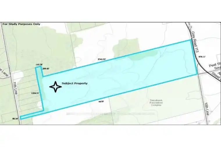 89+/- Acres of Prime Land | Blue Mountains. A rare opportunity to own an expansive parcel just minutes from Lora Bay, Thornbury, and the Village at Blue Mountain. This approximately 89-acre property features beautiful natural surroundings and offers incredible potential whether you’re envisioning future development, a recreational retreat, or a private estate (subject to approvals).Ideally situated in one of Southern Georgian Bays most desirable areas, enjoy privacy and tranquility while still being close to golf, skiing, trails, and the waters of Georgian Bay. Buyer to perform their own due diligence regarding zoning, permitted uses, and development potential.