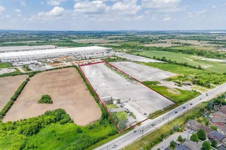Prime 12.27-acre industrial development parcel in the heart of Caledon’s Tullamore Industrial District. Located at the northeast corner of Airport Road and Mayfield Road, the site benefits from Prestige and General Industrial zoning (MP-482-Hl3 & MS-483-Hl3) with full municipal servicing underway. Shovel-ready lot with strategic access to Highway 410, Pearson Airport, and the GTA-West growth corridor. Excellent opportunity for industrial developers seeking scale, infrastructure, and planning certainty.