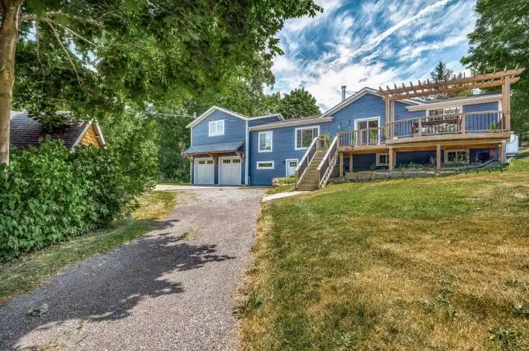 County Paradise Just Minutes from Belleville! Discover your dream home in this beautifully renovated bungalow, perfectly positioned on a spacious 0.62-acre lot with stunning views of the Bay of Quinte just across the street. Enjoy serene water vistas from the north-facing windows while being only 10 minutes from all the conveniences of Belleville. Step inside to an impressive open-concept great room featuring gleaming hardwood floors and a seamless flow into the dining area, ideal for entertaining. A large picture window bathes the space in natural light, with direct access to the private backyard perfect for summer barbecues. The cozy living room boasts a WETT-certified wood stove and opens onto a deck where you can relax and take in the water views. The chef-inspired kitchen is a true showstopper, complete with quartz countertops, a farmhouse sink, under-cabinet lighting, a pantry with pull-out shelving, and a custom butlers servery a true testament to pride of ownership. The spacious primary suite offers a large picture window, a stylish 3-piece ensuite, and an expansive walk-in closet with custom shelving. The fully finished walk-out basement includes a large rec room with built-in shelving and an electric fireplace, a finished laundry area, home gym space, and ample storage. The double car garage features a 552 sq. ft. loft offering incredible potential for a studio, guest suite, office or a home gym! This move-in-ready home is beautifully enhanced throughout and offers the ultimate in relaxed, waterfront-adjacent living.