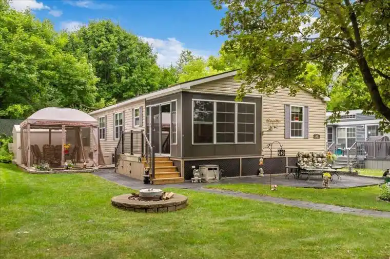 Welcome To This Exceptional 2014 Northlander Built “Escape All Season” Model. Approximately 1000sqft, This Rarely Offered Double-Wide Unit Is Nestled In The Exclusive Adults-Only Section Of The Highly Sought-After Cedar Beach Resort. Situated On The Shores of Musselman’s Lake, Just 40 Minutes From Toronto! This Spacious And Thoughtfully Designed 2-Bedroom, 2-Bathroom Retreat Features A Generous Open-Concept Kitchen And Living Room, Two Electric Fireplaces & A Handy Storage Room. Enjoy Your Morning Coffee Or Evening Glass Of Wine On The Screened-In Porch. Relax Or Entertain Outdoors Under The Gazebo, By The BBQ, Or Around The Cozy Firepit. A Handy Shed Adds Even More Convenience For Storage. Immaculately Maintained, This Unit Comes Fully Furnished And Ready For It’s New Owner! Simply Move In And Start Enjoying Your Home Away From Home. And With 2025 Fees Already Paid, Theres Nothing To Do But Settle In And Relax. The Resort-Style Community Offers An Abundance Of Amenities And Meticulously Cared-For Grounds. Whether You’re Looking For A Summer-Long Escape Or A Weekend Getaway, This Adult-Only Section Offers Peace, Quiet, And A True Sense Of Retreat. Season Runs From April 1st To October 31st (Weather Permitting). Don’t Miss This Opportunity To Own A Turnkey Vacation Property. Please Note This Is A Gated Community And Appointments For Viewings Must Be Made Through Listing Agent Or A Realtor.