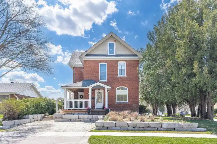 Charming Brick Home on Coveted Tree street in Downtown Collingwood! Located on a desirable corner lot, this gem features a rare in-law suite complete with a full kitchen and bath – ideal for extended family or guests. Step inside and be greeted by original craftsmanship and thoughtful updates throughout. The heart of the home has a bright, sun-filled kitchen, featuring stainless steel appliances, a central island, and pot lighting, with direct access to the welcoming front porch – perfect for morning coffee. The formal dining room, framed by original wood pocket doors, offers an elegant space for entertaining, while the cozy living room is anchored by a Regency gas fireplace. Upstairs, you’ll find three generously sized bedrooms, a full bath, and a convenient, second laundry area. A spray-foam insulated third floor provides added versatility, currently set up as a family room, bedroom, and office. Built with care and quality, the 22 x 22 insulated double car garage includes its own electrical panel and sits beneath the spacious in-law suite, offering flexible living arrangement or income potential. With two driveways and parking for up to five vehicles, space is never an issue. This home also comes with a fenced backyard and 8 x 12 BC Greenhouse with double insulated glass, garden beds and lush landscaping. This is more than just a house – it’s a warm, welcoming home full of history, character, modern comfort in one of Collingwood’s most sought-after neighborhoods. A rare opportunity that’s truly a pleasure to view and a delight to own!