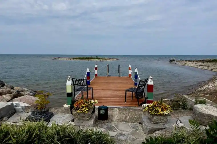 Elegant Waterfront Living on Georgian Manor Drive in Collingwood. Welcome to this beautifully renovated Georgian Bay waterfront home, where modern luxury meets serene lakeside living. Set on a 75 x 205 ft lot with stunning views and direct access to the bay, this thoughtfully updated home offers the perfect blend of comfort, style, and functionality. Inside, you’ll find 3 spacious bedrooms and a bright, open-concept kitchen, living room, and breakfast nook with vaulted ceilings that create an airy, inviting space. The living room features a cozy gas fireplace, while the kitchen is a chefs dream outfitted with custom cherry cabinetry, leather-finished granite countertops, and professional-grade stainless steel appliances. A separate formal dining room provides the perfect setting for special gatherings, while heated floors in the foyer, bathroom, and laundry room add year-round comfort. The single-car garage provides convenience and additional storage. Step outside to the covered waterfront porch, a peaceful retreat for enjoying your morning coffee or evening sunsets. The shoreline features a hard-packed gravel bottom with a shallow, safe entry ideal for swimming and family enjoyment. Just offshore, a charming island invites you to swim out and explore.This home has undergone a major renovation and refit in recent years, ensuring easy living in one of Collingwoods most desirable waterfront locations. Experience Georgian Bay at its finest, a rare opportunity to own a slice of paradise.
