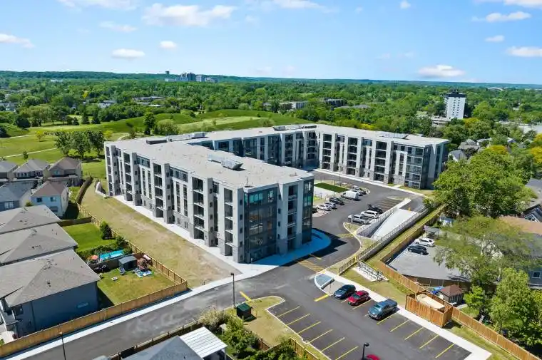 Welcome to The Montebello, St. Catharines’ premier luxury condo community. This bright and spacious 2-bedroom, 2-bathroom suite features an open-concept layout with 9 ft smooth ceilings, expansive windows, and a private concrete balcony with tinted glass railing overlooking lush golf course and green space. The modern kitchen is equipped with premium white appliances, stainless steel sink, and exterior-vented hood fan. Enjoy the comfort of in-suite laundry, programmable thermostat, and efficient forced-air gas HVAC system with individual suite control. Smart home features include keyless digital entry, remote thermostat access, building entry sensors, and mobile-integrated security. Stylish bathrooms offer chrome fixtures, one-piece tub/shower enclosures, and designer finishes. Premium composite flooring runs throughout the suite. Residents enjoy access to a state-of-the-art fitness centre, elegant party room, games lounge with golf course views, pickleball court, and concierge service. Secure underground parking included. Located minutes from Brock University and walkable to downtown shops, dining, and cultural attractions. A perfect blend of luxury, convenience, and modern lifestyle.