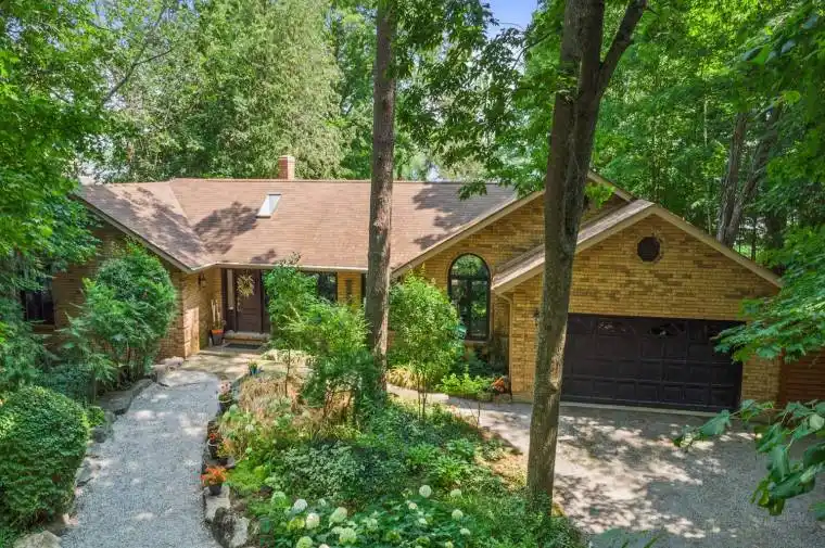 Immerse yourself in the allure of this magnificent, all-brick bungalow, nestled serenely amidst a picturesque, tree-lined driveway. Prepare to be captivated by the property’s enchanting features, including a flourishing landscape adorned with perennial gardens and flagstone walkways, creating an inviting ambiance from the moment you arrive. The waterfront area is truly an entertainer’s paradise, boasting an expansive deck perfect for gatherings, a 12′ x 12′ covered pavilion, a crackling fire pit for unforgettable evenings, and a sandy beach area where memories are made.Take note of the extras like the Naylor Dock System and the 8′ x 12′ Shed with hydro. Inside, you’ll find a custom-designed residence radiating warmth and charm. Featuring spacious, sunlit rooms, impressive vaulted ceilings, a unique sunken dining area, and a large eat-in kitchen with a sizable central island and premium granite surfaces.This home is an entertainer’s paradise, complete with a breakfast area showcasing a breathtaking view of Pigeon Lake.The master bedroom is a peaceful retreat, complete with a beautifully updated en-suite bathroom boasting both a separate, refreshing shower and a lavish soaking tub. Other features include convenient main-level laundry and direct garage access. And don’t overlook the wonderful sunroom an ideal space to relish all seasons in comfort! Spend your days taking in the serene views of the water, and the wonders of the wildlife. And for those moments when you desire the vibrant pulse of town life, a brief drive unveils a world of possibilities, from upscale shopping destinations and diverse culinary experiences to exciting festivals, the iconic Lock 32, vibrant farmer’s markets, and much more. Embrace the opportunity to create the lifestyle you’ve always envisioned at this inviting waterfront property where serenity, luxury, and unforgettable memories converge!