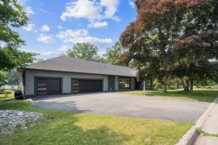 1 Gaywood Gardens, Brantford Luxury, Redefined. Step into a world of modern elegance in this custom-built 2019 bungalow offering over 4,000 sq ft of high-end living space in one of Brantford’s most desirable pockets. Just moments from the Brantford Golf & Country Club, Glenhyrst Gardens, scenic trails, and top-rated schools, this exceptional residence combines timeless design with everyday convenience. The open-concept main floor welcomes you with soaring 10-foot ceilings, engineered hardwood floors, and oversized windows that bathe the space in natural light. At the heart of the home, the chef’s kitchen features BOSCH appliances, sleek flat-panel cabinetry, a striking tile backsplash, and access to a covered porch, unfinished, and ready to be customized to your taste. All three main-floor bedrooms are thoughtfully designed with private ensuite bathrooms and radiant in-floor heating. The stunning primary suite boasts a dual vanity, walk-in shower with dual heads, and indulgent body jets. The fully finished lower level adds versatility with a spacious rec room, home office, bonus room, and a fourth bedroom with a 3-piece bath, ideal for extended family or guests. Designed with long-term comfort and efficiency in mind, this home includes a triple-car garage with Wi-Fi-enabled insulated garage doors, a 146 x 96 attached insulated workshop/shed, and a complete security system with four night vision cameras. Premium upgrades include spray foam insulation (R40), attic insulation (R60), all-new HVAC, ductwork, 200 Amp panel, plumbing, double-glazed windows, and solid eight-foot wood interior doors. Bright soffit lighting, hardwired internet at every TV and desk, and energy-saving LED lighting throughout complete the experience. Included: espresso machine, washer/dryer, all appliances, custom blinds, dining table/chairs, and patio furniture. This is more than a home; it’s where luxury meets lifestyle.