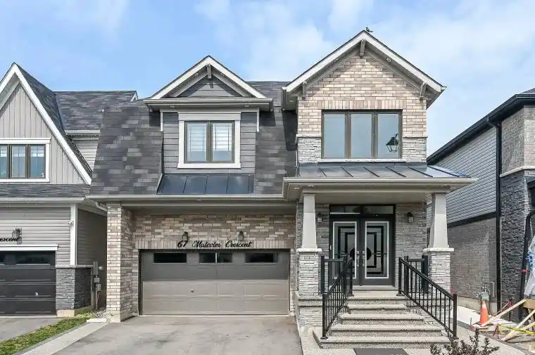 Welcome to 67 Malcolm Crescent. This tastefully decorated home offers 2,307 sq ft of thoughtfully designed living space and features spacious, open-concept living ideal for families of all sizes. The main floor features pot lights throughout, creating a warm and inviting atmosphere for everyday living and entertaining. The large kitchen is equipped with upgraded cabinetry, granite countertops, a center island, and a breakfast area. A separate dining room and bright great room complete the main floor. Upstairs, youll find four generous bedrooms, including a primary suite with double walk-in closets and a private ensuite featuring a natural wood vanity top. The second level also includes a 4-piece bathroom which is also finished with a natural wood counter and convenient laundry facilities. The unfinished basement provides potential for future living space or storage. Step outside to a beautifully landscaped backyard with a concrete patio. Additional exterior pot lights have been added around the home for a polished look. Located steps from parks, walking trails, the Grand River, and a brand new school currently under construction. This is the perfect opportunity to join a growing, family-friendly neighbourhood!