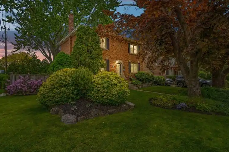 Timeless charm meets everyday comfort in this beautifully maintained Georgian-style home nestled in the heart of Downtown Burlington. With its red brick façade, classic black shutters, and elegant arched stone entryway, this 3-bedroom, 1.5- bath property offers a rare blend of character, curb appeal, and modern touches. Step inside to a spacious main level that features a bright, good-sized living room with a working fireplace, perfect for cozy evenings or relaxed entertaining. The updated eat-in kitchen is both functional and welcoming, and the conveniently located main floor powder room adds practicality to the homes classic layout. Upstairs, you’ll find three generous bedrooms, including a spacious primary with two closets and a charming nook ideal for a reading corner or home office setup. A full 4-piece bath completes the upper level. The finished basement offers even more living space, perfect for a family room, rec area, or play zone .Outside, enjoy the serenity of a fully fenced, private backyard surrounded by mature trees and perennial gardens, ideal for morning coffee, evening BBQs, or pets at play. The detached garage offers extra storage or parking flexibility. Located on a tree-lined street in one of Burlington’s most sought-after neighbourhoods, you’re just a short walk to the lake, shops, restaurants, parks, schools, and transit. Easy highway access makes commuting a breeze. This is downtown Burlington living at its finest, classic, convenient, and full of charm.