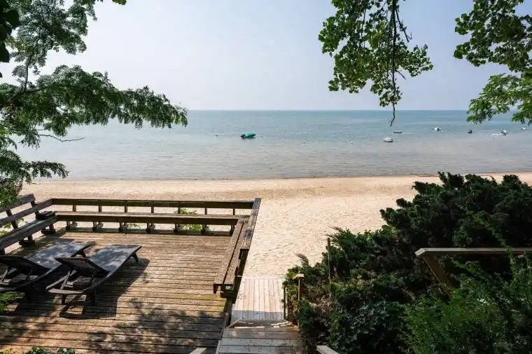 Crescent Beach has long been considered one of the finest beaches along the Lake Erie shoreline in the Niagara Region. Not only does it offer a beautiful private sand beach but it is also perfect for mooring your boat! The shallow water makes it safe for even the youngest swimmers. The home itself is full of character, featuring a stone fireplace, beamed ceilings and beautiful built-ins. The rooms are spacious and bright offering wonderful lake views. A large sunroom stretches along the lakeside, perfect for relaxing with a book while catching the lake breeze, and a charming second sunroom is used as a breakfast nook to enjoy your morning coffee. The second floor adds four bedrooms, each enjoying lake views. The lakeside deck allows a spectacular vantage point to watch water activities. Located along a quiet private road, the home is serviced by municipal water, sewer and high-speed internet. The well known “Friendship Trail” bike path is just across the road. This property is conveniently located close to shops and restaurants and the US border. You’ll want to venture just a bit farther to explore the charming towns of Ridgeway, Crystal Beach and Niagara-on-the-Lake. Challenging golf courses (both private and public) are also nearby. There’s still time for your family and friends to enjoy the summer at this wonderful spot!