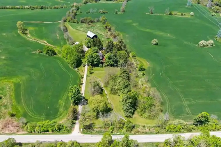 Picture perfect setting on 84+ beautiful acres in the heart of Halton Hills Country! Fabulous tree-lined drive and professionally landscaped gardens welcome you to this gorgeous century home in mint condition and completely updated, spectacular stone studio with tons of charm and incredible barn plus a 5-bay driveshed. Versatile living space. The stone house can be used for an office, teenagers getaway, inlaw suite and so much more. Stunning open concept kitchen with quartz counters, breakfast bar, stainless steel appliances open to a sitting room with gas stove, formal living room w/cozy wood burning fireplace (with WETT compliance certificate), pretty dining room, primary suite with walk-in closet and luxurious ensuite, lovely three-season room boasting country views and tons of storage in the basement. The formal living room could work as a main floor bedroom ideal for an elderly family member making it a three bedroom home. Heated floors at entrance, hardwood flooring, main floor laundry, updated plumbing and electrical, skylights, pot lighting, wainscotting & more. Tastefully designed keeping all the charming character but with modern conveniences. Forced air gas heating – a rare find in the country! Also includes solar panels. Approx 65 acres farmed. Prime location centrally located close to Georgetown, Milton and Acton and minutes to the 401 & the GO. It’s the perfect country package!