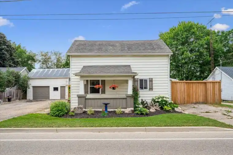Charming family home in the heart of Conestogo. Enjoy small-town living just 5 minutes from top city amenities. This updated character home features exposed beams on the main floor, a renovated bathroom, freshly painted main floor and an updated spacious kitchen with gas-stove and stainless steel appliances. The second floor offers two large bedrooms with ample natural light and room for the whole family. Situated on a spacious 86 x 200ft irregular lot, the property backs onto a community center with tennis courts, ball diamond, playground and a ball hockey rink. The property offers ample parking, including a double driveway for 6+ cars and a detached workshop/garage with a drive-through door. An additional single driveway accommodates 2 more vehicles or allows for parking an RV/other machinery. Recent updates include a newer furnace and A/C (2018), an owned water softener (2019), gas line for a BBQ, gas stove (2022), fridge (2023), washer & dryer (2021). The fully fenced yard boasts a large deck with a gazebo, a large firepit, 4 lilac trees, 2 cherry trees and a well established grape vine as well as beautifully landscaped gardens with plenty of room for a vegetable garden. Dont miss out on this impressive home!