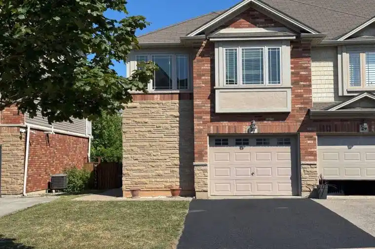 Wonderful end unit freehold townhome on extra wide lot with large backyard. Private main side entrance. Move in condition. Great neighbourhood with shopping, schools, QEW and “GO” access. Losani built quality. Large Primary bedroom with 4 piece ensuite. All bedrooms have walk-in closets. Large and bright open basement. Garage access from inside. Hardwood floors in living / dining room. Small loft / office on landing . Walk-out to deck and backyard from living room.