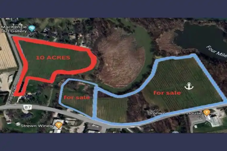 Escape to Elegance: Dream Farm Property in Niagara on the Lake Nestled in the heart of Niagara on the Lake, this exquisite 10-acre farm property offers a blend of luxury, tranquility, and agricultural prowess, making it an unparalleled investment. Boasting top-grade Complex 1 soil, the land currently nurtures a flourishing tender fruit orchard, testament to its fecundity and potential for a variety of agricultural ventures. With the added benefit of significant agricultural tax implications and savings, this property presents a unique opportunity to cultivate a prosperous and sustainable lifestyle. Envision constructing your dream home amidst the picturesque landscape, where every window frames the serene beauty of rural nature. The property’s strategic location near the quaint town, surrounded by esteemed wineries and distilleries, ensures you enjoy the tranquility of country living without sacrificing convenience. Imagine your mornings beginning with the gentle rustle of leaves, your days marked by the joy of harvesting your own produce, and your evenings settling down to the peaceful silence of the countryside, with the proximity to cultural experiences just a short drive away. The land’s exceptional position, abutting Four Mile Creek and having frontage on either Firelane 2 or Lakeshore Road, offers not just stunning views but also a sense of exclusive retreat. This rare gem in a prime area promises more than just a home; it offers a lifestyle of leisure, luxury, and a return to nature. Whether you’re an aspiring vintner, looking to expand your agricultural portfolio, or dreaming of a serene haven to call home, this property in Niagara on the Lake awaits to transform your dream into reality. Embrace the opportunity to carve out your own piece of paradise in one of the most sought-after locations. *ALSO SOLD AS A BUNDLE WITH 1332 LAKESHORE & 1378 LAKESHORE