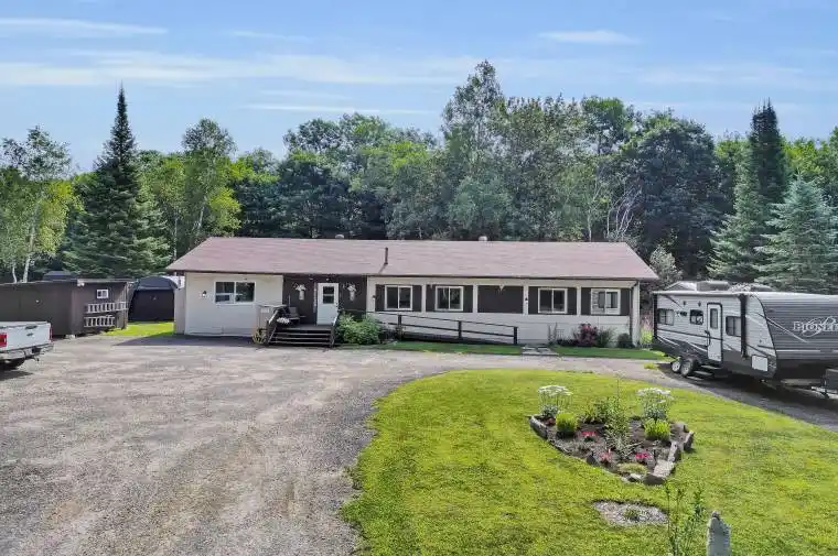 Pride of ownership shines throughout this well-maintained 2-bedroom, 1-bathroom home, located just minutes from downtown Huntsville, schools, shopping, and all the amenities you need. Offering a spacious and functional layout, this home features a large living area and a bright, eat-in kitchen with direct access to a cozy back deck, ideal for morning coffee or evening BBQs.Set on a beautifully treed, level lot backing onto a ravine, the expansive backyard offers great privacy and space to relax, garden, or entertain. A circular driveway provides easy access and ample parking, while three outbuildings add bonus storage for all your tools and toys.Nestled in a quiet, friendly neighbourhood, this property combines comfort, space, and location making it a perfect family home whether a first time home buyer or looking to downsize. Monthly road maintenance fee of $135 applies.Dont miss this opportunity to enjoy Muskoka living at its best!