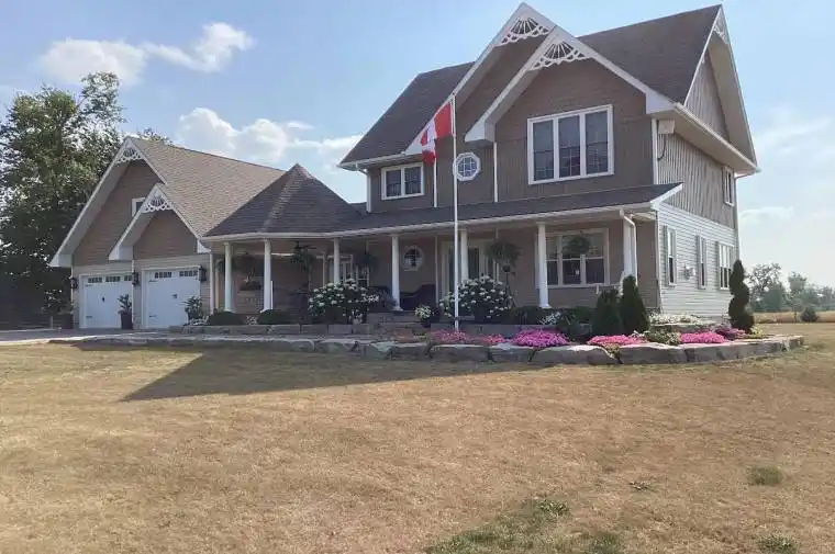 This custom-built on a full-sized acre lot offers country living at its best! Located a short drive north of Lindsay just off Highway 35 on a quiet year-round road that has just been freshly paved. The over-sized attached 2 car garage has access from the main floor and an entrance to the backyard. The kitchen is loaded with lots of upgraded cupboards and cabinets, track lighting, and plenty of counter space. Off one end of the kitchen is a cozy sitting room with a view of both the backyard and front porch. There is a spacious dining area off the kitchen with lots of big windows. The living room has its own propane fireplace to enjoy on those cold winter nights. The primary bedroom upstairs has its own ensuite bathroom with separate shower and soaker tub. Both these rooms have high cathedral ceilings. There is in-floor heating in the basement and an excellent well servicing the property (10 gallons per minute according to well drillers report). The sprawling front porch with a large sitting area under the gazebo offers a great place in the spring, summer and autumn to entertain or relax. It also offers a great view of a beautiful flower garden bordered and landscaped with limestone rocks.
