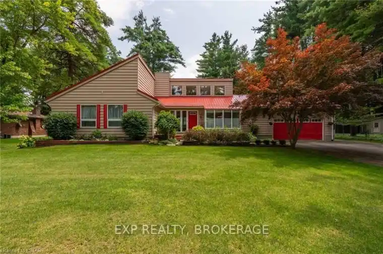 MULTI LIVING: This beautiful, private, immaculately kept home is situated on .62 acres of picturesque property. Also included is a pool cabana, fire-pit, and surrounded by many tall shade trees. There are 2 completely secure and separate residential buildings, joined by a heated, enclosed breezeway. The main structure is a ranch style with 3 bedrooms and a 3 piece and 4 piece bathroom. The main floor features a living room with vaulted ceilings, hardwood flooring, and gas fireplace. The main floor also includes a modern kitchen, pantry, dining room, and laundry in the mud room. The lower level includes a fully furnished family room with a gas fireplace, a workshop, cold room, and a storage area. The second structure is a paradise on its own, it is a Cape Cod style bungaloft. The main floor features a vaulted ceiling with gas fireplace, a bedroom with a cheater ensuite, kitchen, and dining area leading to an outside deck. The 2nd floor includes a guest bedroom with a sitting area and balcony that overlooks the main floor. A chair lift is included for easy access to the upstairs. There is a large unfinished basement that spans the whole area of the 2nd structure.These homes are absolutely move-in ready, extremely well maintained, included is a newer metal roof, sundeck, updates to the ensuite, and some flooring.